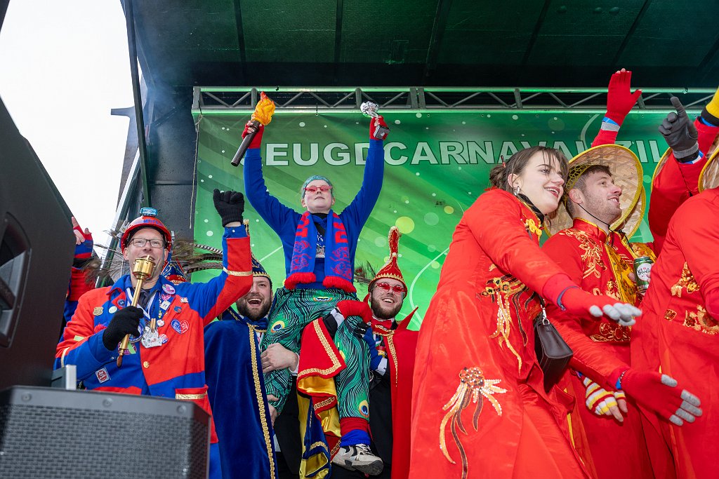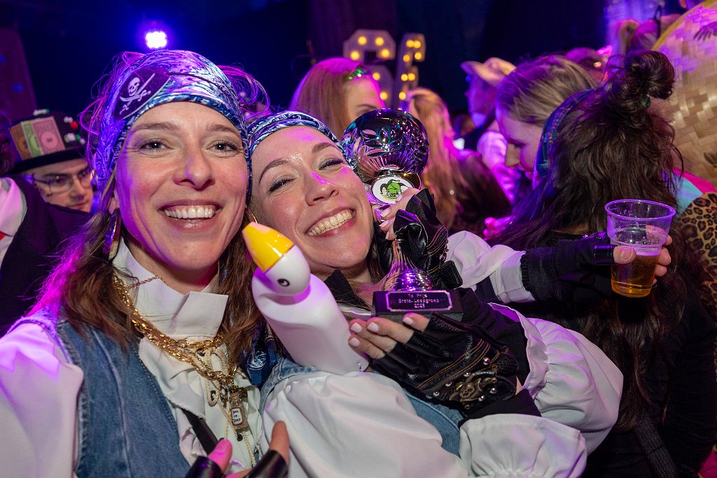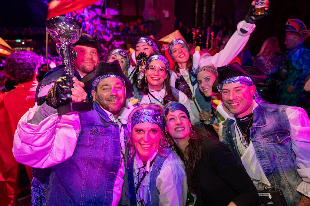 Heel veel prijzen, maar dat bewaren we voor de Vastelaovendpos. Wel even deze prijs van de wagenbouwers onder elkaar, de wagenbouwerstrofee voor de Feestneuzen