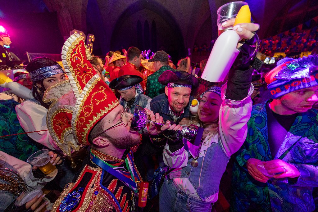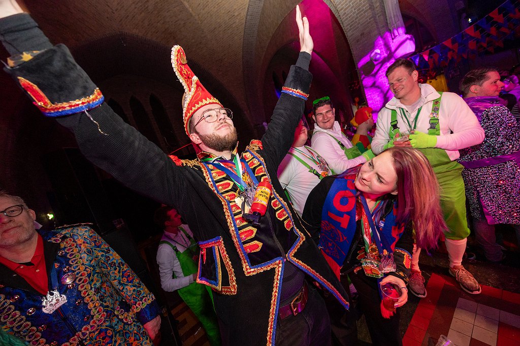 Niet één keer, maar heel de optocht springend en met de klompjes tegen elkaar