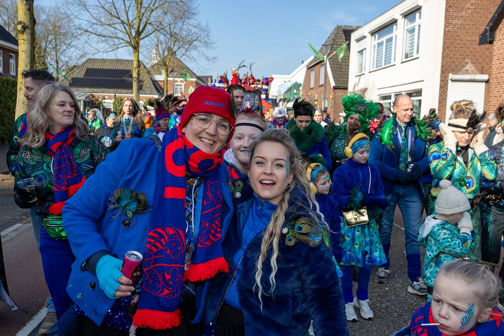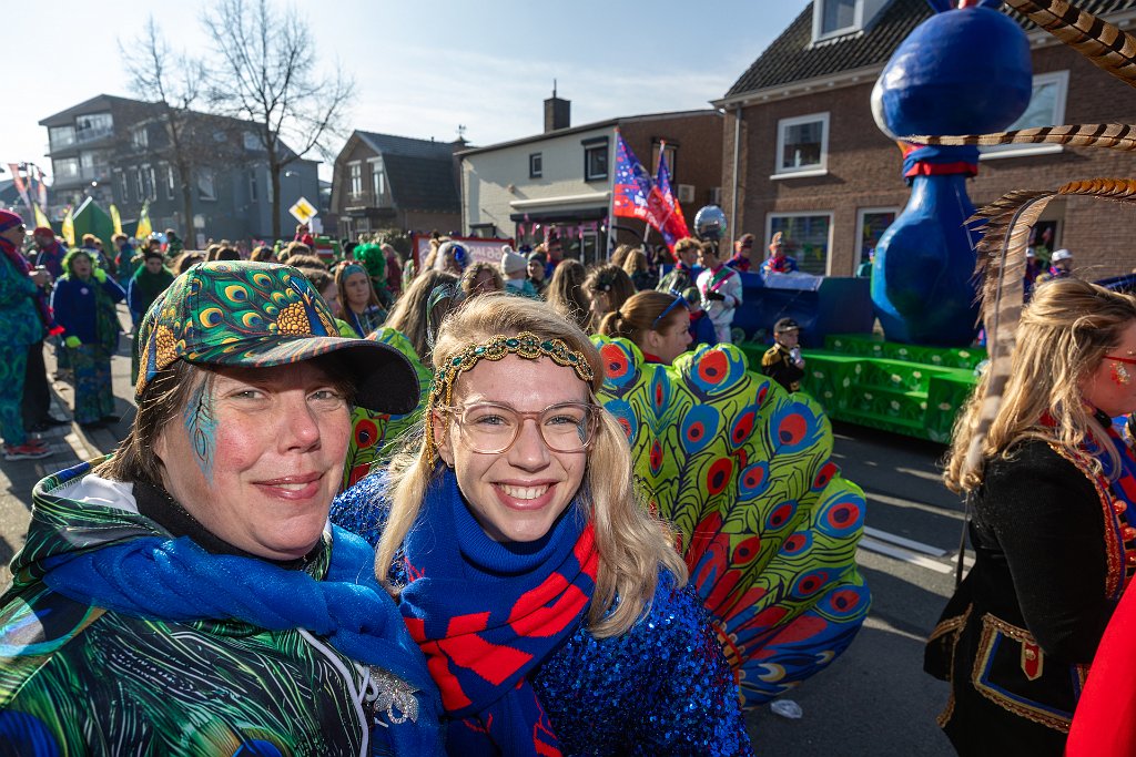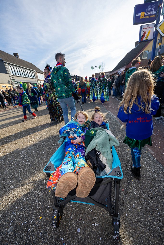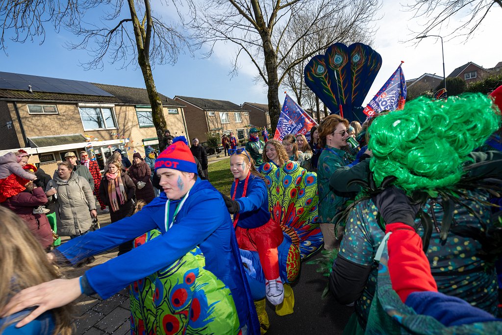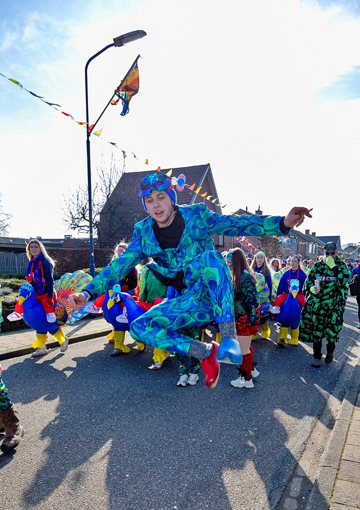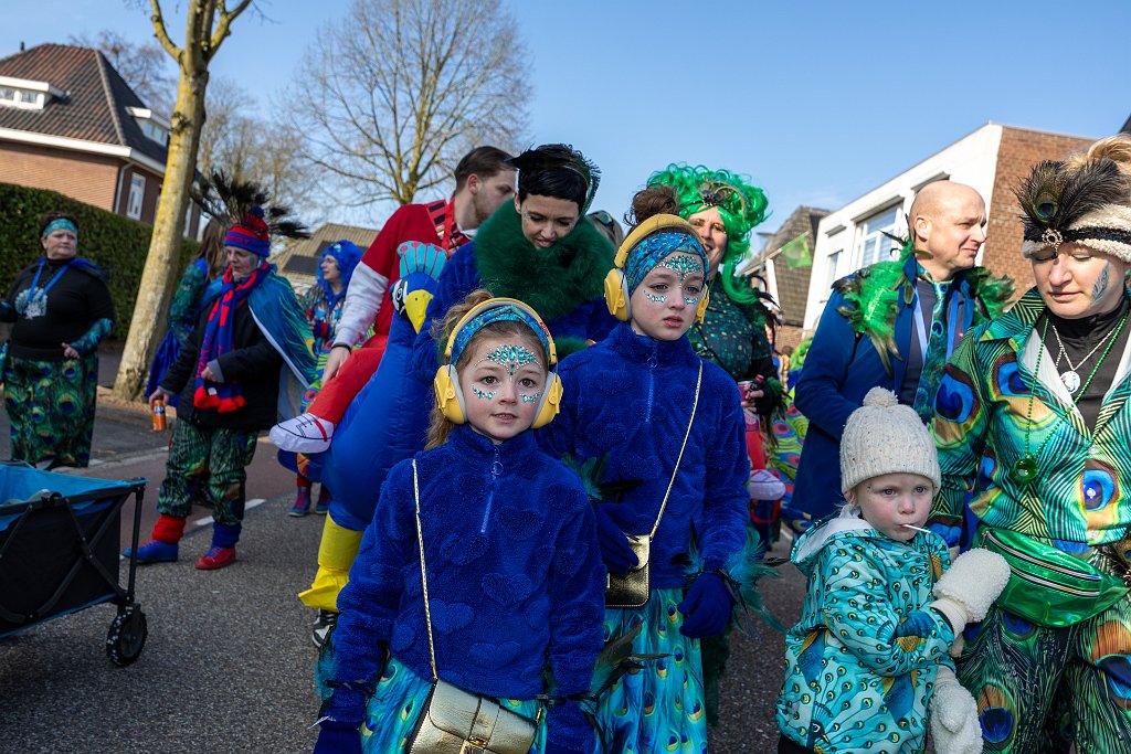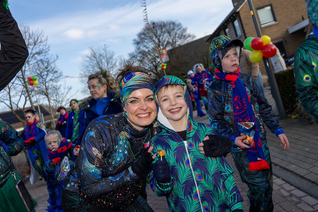 Ook de kleine pauwtjes hebben het prima naar hun zin in de frisse optocht