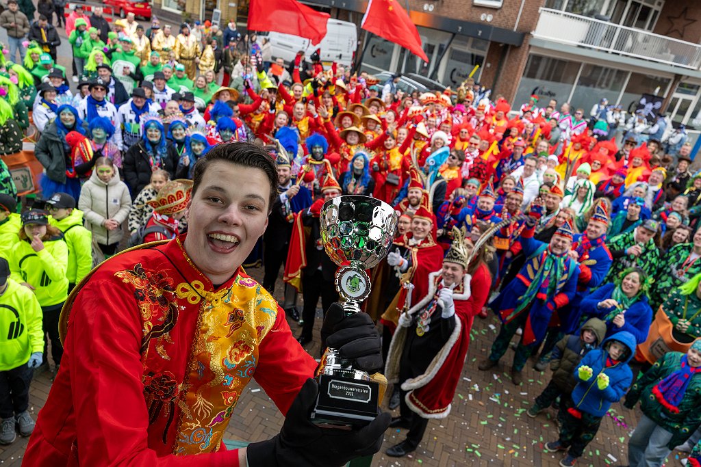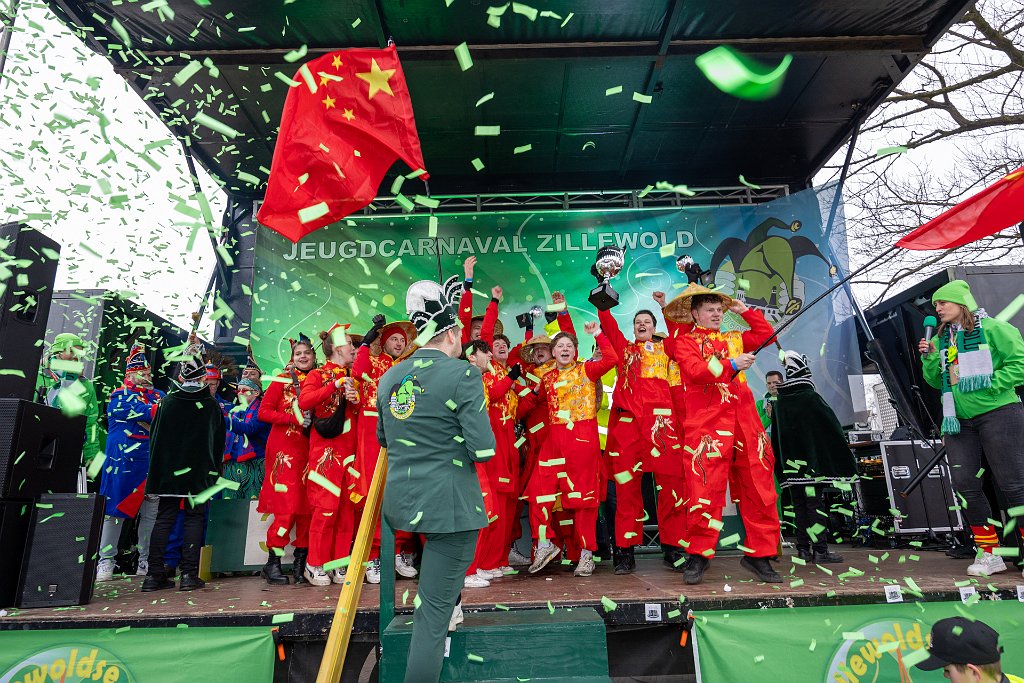 Applaus voor de feestneuzen. Wat een mooie loopgroep en praalwagen! En dat thema: “Wij doen Chi-na” Geweldig