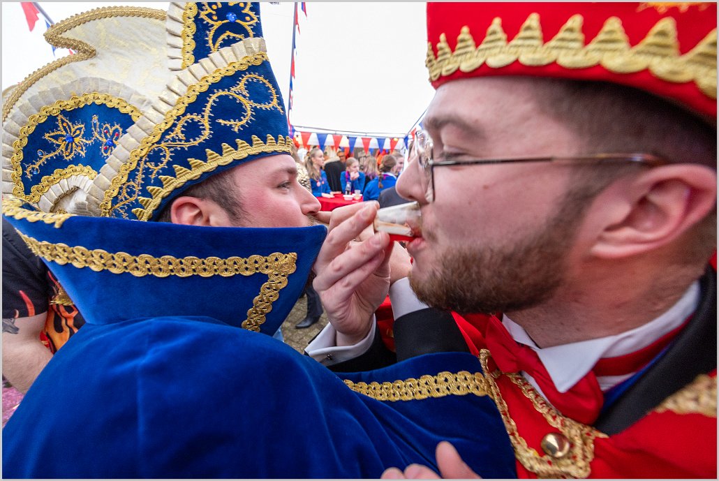 In de kleine entreetent passen de hoogheden net naast elkaar